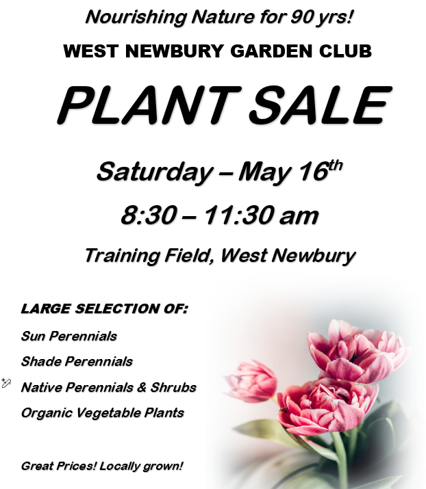 Plant Sale: May 16th, 8:30 to 11:30am, Training Field